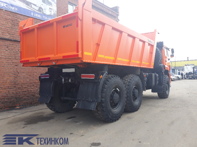Колесная формула :6х6 Тип ошиновки :2 Грузоподъемность :19 т Двигатель :КАМАЗ Мощность двигателя :400 л.с. Модель КП :ZF16 П/о главной передачи :5,143 Объем кузова :16 м3 Спальное место :— Шины :12.00R20 Бак :350 л ТСУ :—