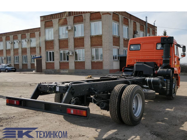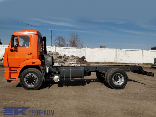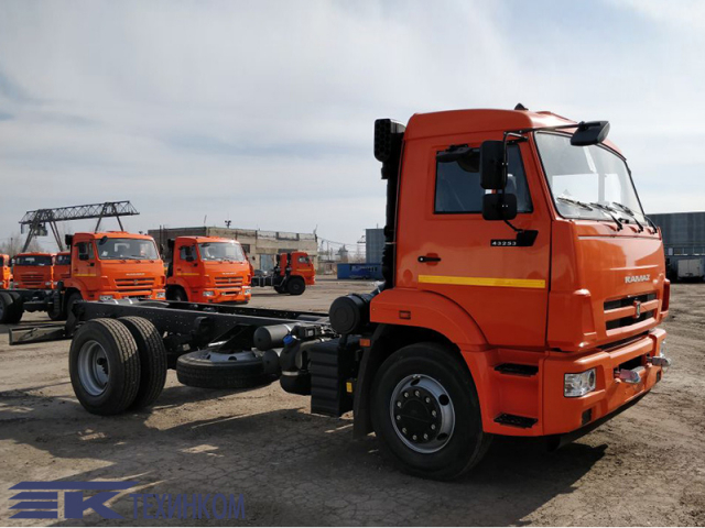 В продажу шасси КАМАЗ поступает с турбированным дизельным двигателем импортного производства, что гарантирует не только мощность в185 л.с., но и топливную экономичность, а также полное соответствие европейским нормам экологической безопасности Евро-3. На грузовике использована простая и надежная трансмиссия с 5-ступенчатой дистанционно-переключаемой МКПП, а также испытанная практикой система пневмотормозов. Благодаря вместительным бакам обеспечивается приемлемая для любого практического случая автономность.