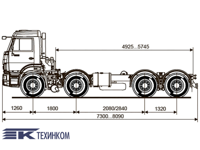 Новое грузовое шасси прошло проверку временем, поэтому в надежности нет никаких сомнений. Модель обладает колесной формулой 8х4. Устойчивость возросла за счет того, что предусмотрена дополнительная ось. Максимальная нагрузка на конструкцию 22 тонны, поэтому шасси КАМАЗ 6540 является базой для многих видов спецтехники: автобетоносмесителей, автокранов, лесовозов, самосвалов (объем кузова 6 кубов).
